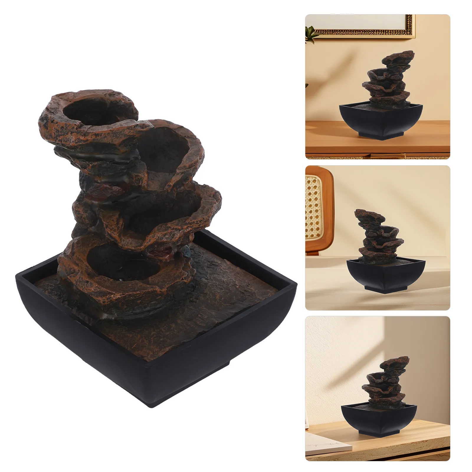 Fontaine d'eau de bureau d'intérieur avec lumières LED, artisanat en résine avec pompe électrique, micro-paysage à 4 niveaux pour la décoration de jardin de bureau
