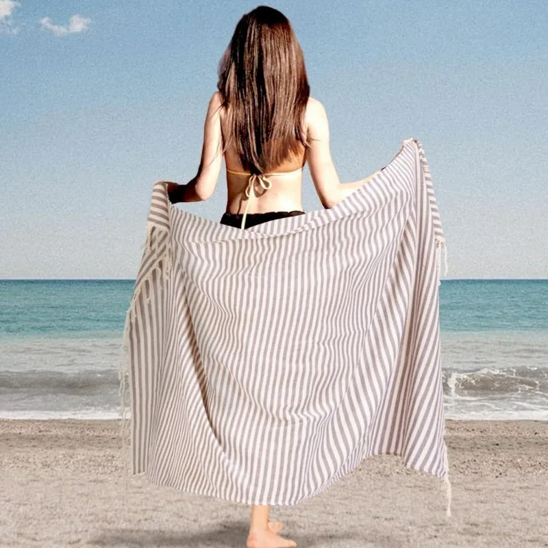 Serviette de plage légère – Rayée, à séchage rapide, style Boho pour piscine, natation, voyages et camping