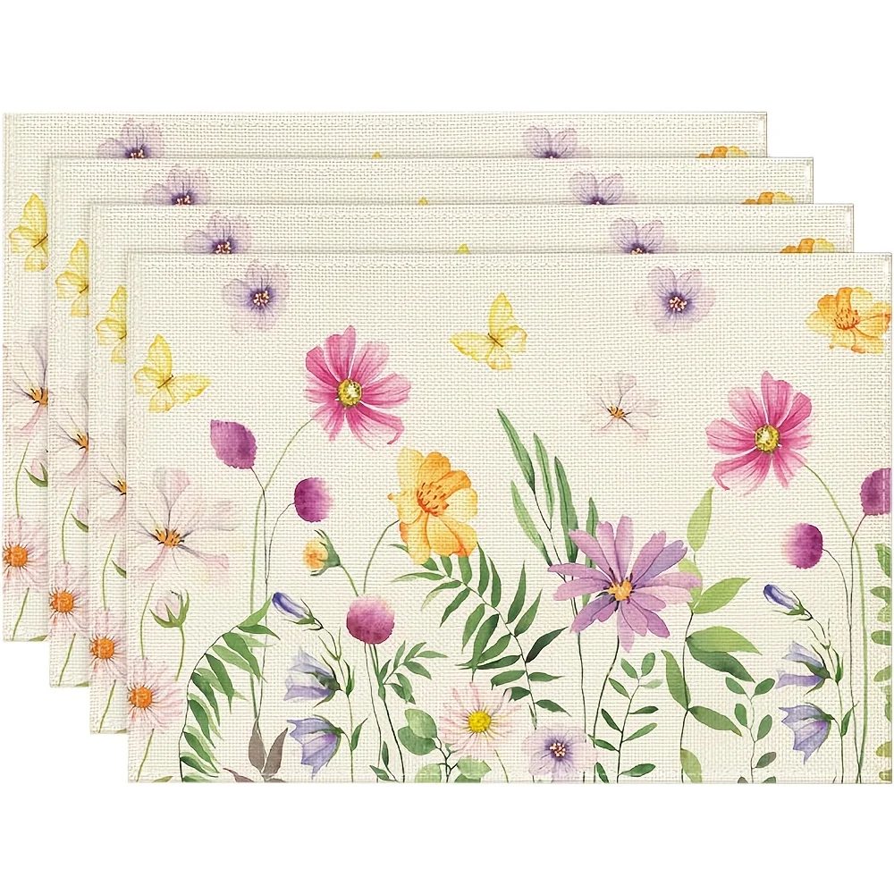 4 pièces, sets de table rectangulaires lavables à l'aquarelle avec motifs de fleurs sauvages et de papillons, adaptés aux fêtes, à la décoration de la maison, aux comptoirs de cuisine, aux tables à manger, pour embellir votre salle à manger et votre cuisine, cadeaux d'anniversaire et cadeaux de fête de déménagement pour la famille et les amis