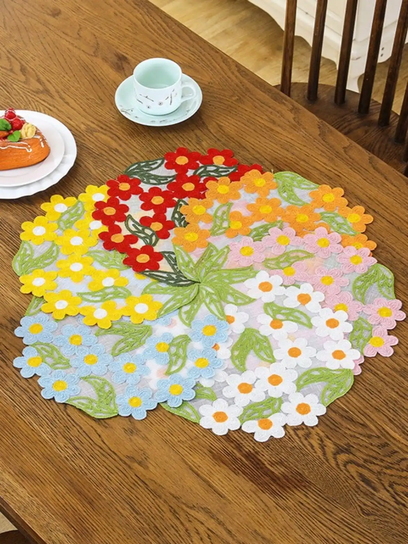 VIKAMA – tapis de salle à manger de campagne de Style européen, 4 pièces, Table à manger ronde florale, décoration et accessoires de bureau