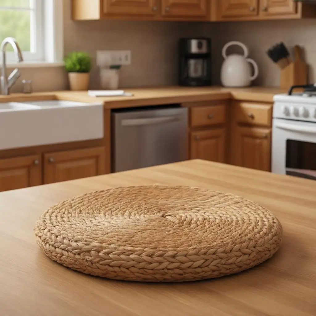 Tapis de protection de table rond en paille de style rustique pour la cuisine familiale, résistant à la chaleur, tapis d'isolation vintage pour la maison