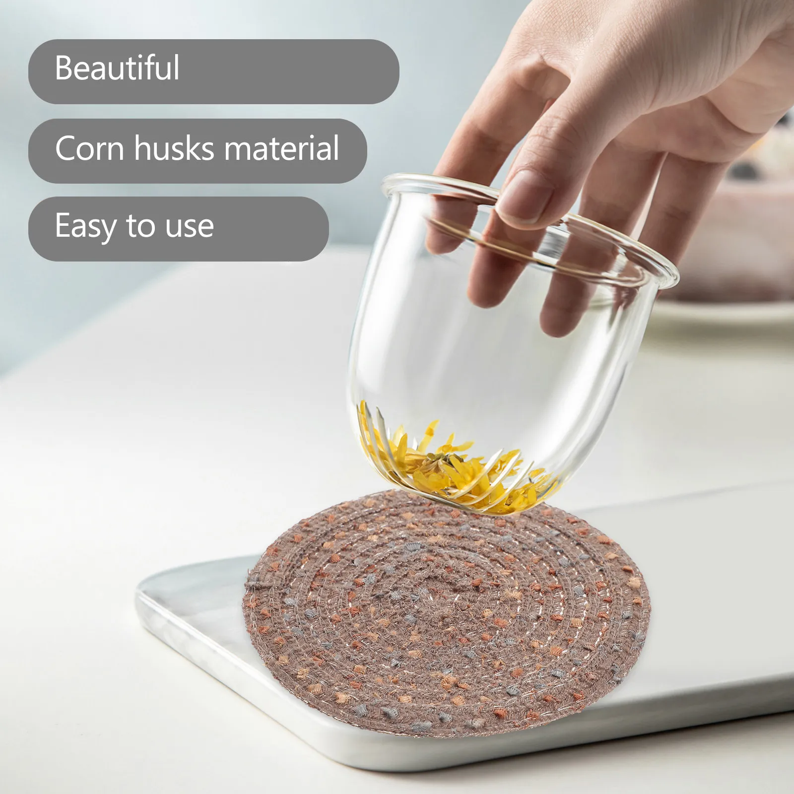 Lot de 4 dessous-de-verre tressés résistants à la chaleur, ronds, pour cuisine, salle à manger, salon, décoration intérieure