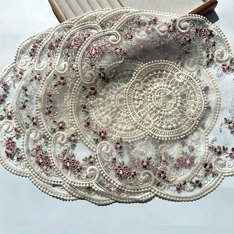 Napperons de Table brodés en dentelle Vintage européenne, tapis décoratifs rectangulaires tissés en Polyester, lavage à la main uniquement, 2 pièces