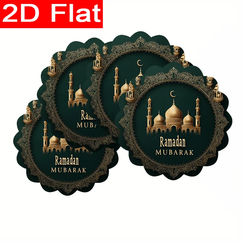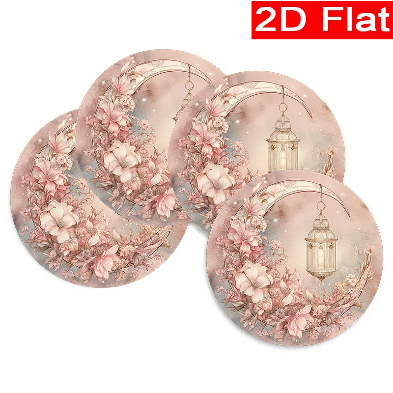 Napperons Happy Ramadan, 4 pièces-38cm x 38cm, adaptés aux décorations du Ramadan et de la salle à manger islamique, lanterne élégante et Table ronde florale