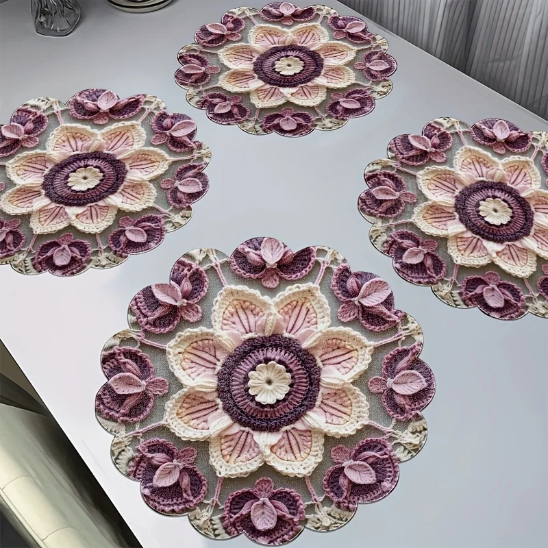Napperons ronds antidérapants et résistants à la chaleur, décor de salle à manger Floral élégant en rose, violet, Beige, blanc, 4 pièces-38cm x 38cm
