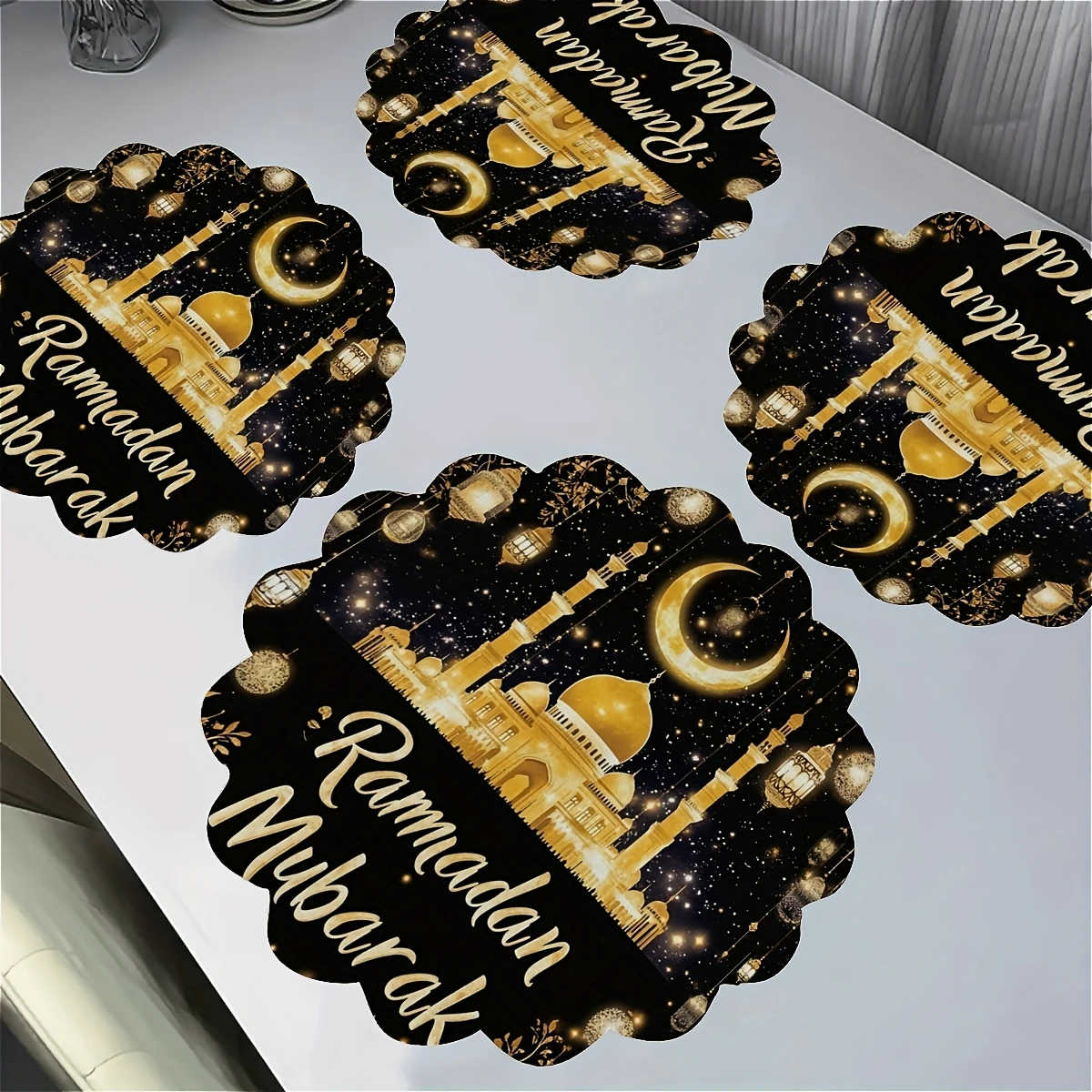 Napperons à bord ondulé Ramadan Mubarak, 4 pièces-38cm x 38cm, tapis de Table ronds de 15 pouces avec Design islamique doré, fond