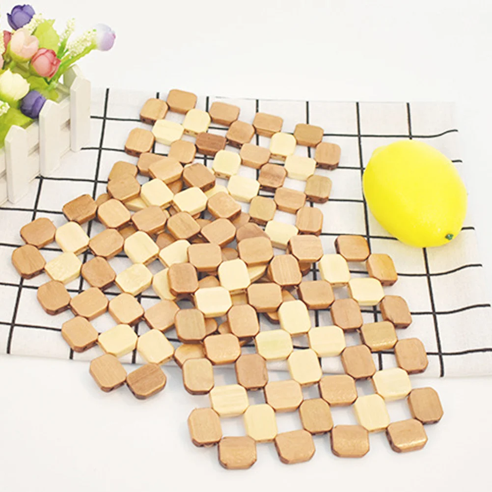 Napperons en bambou creux de petite taille, 1 pièce, tapis de Table antidérapant, isolation thermique, dessous de verre carré pour cuisine, usage domestique, étanche