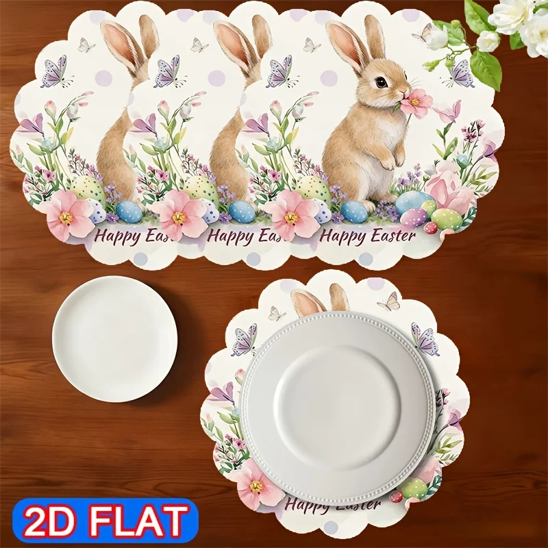 Napperons de pâques en forme de lapin mignon, 4 pièces | Décor de table de vacances de 15 pouces pour la salle à manger, les fêtes et la décoration de la maison