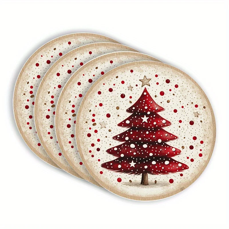 Ensemble de dessous de verre en feutre de noël, 1 ensemble de 8 pièces, tampons de tasse ronds absorbants et antidérapants pour bureau, idée cadeau de vacances, tapis de tasse de noël