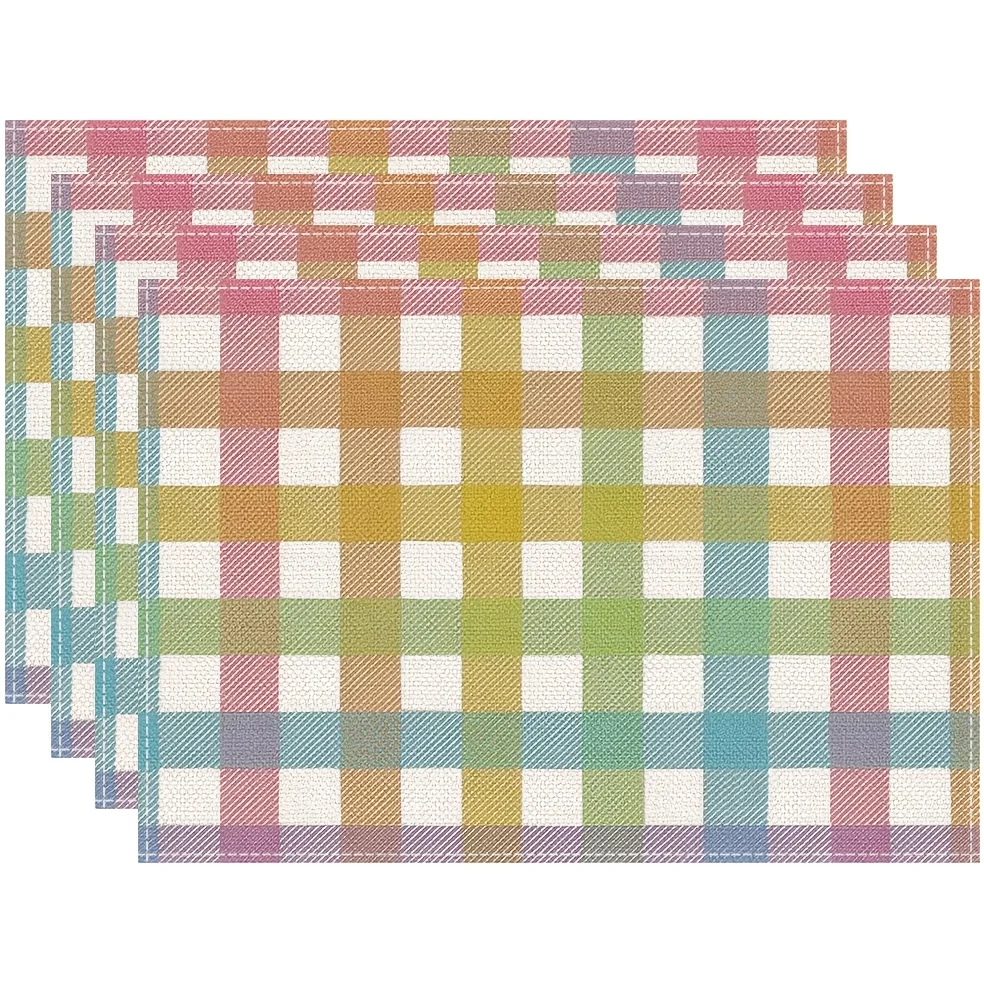 Lot de 4 sets de table plats 2D en tissu à carreaux bleu, rose et jaune, parfaits pour les célébrations de Pâques et la décoration de la cuisine