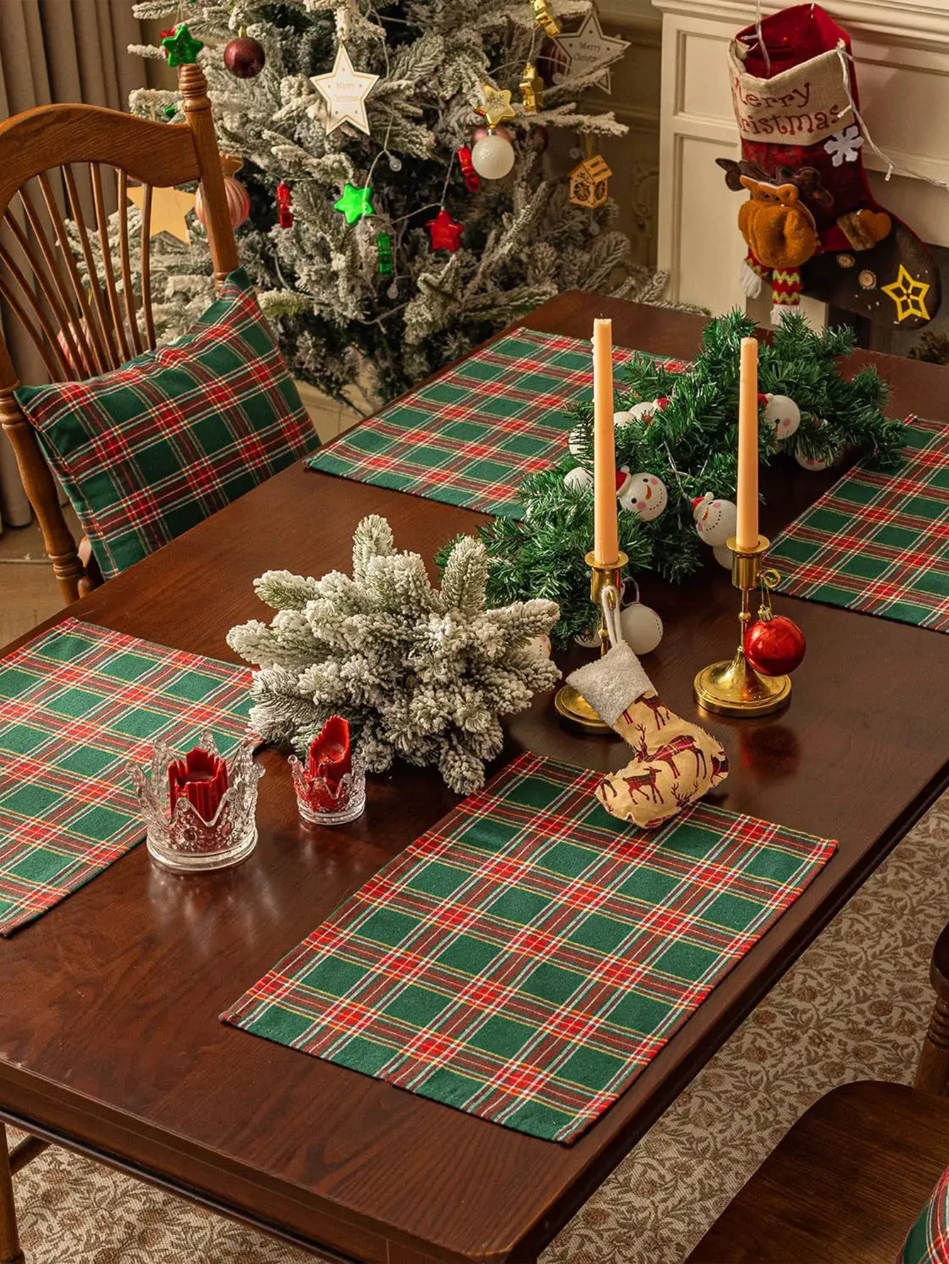 Napperons en ligne à carreaux, tapis épais en polyester durable, décorations de vacances de cuisine et de restaurant réutilisables
