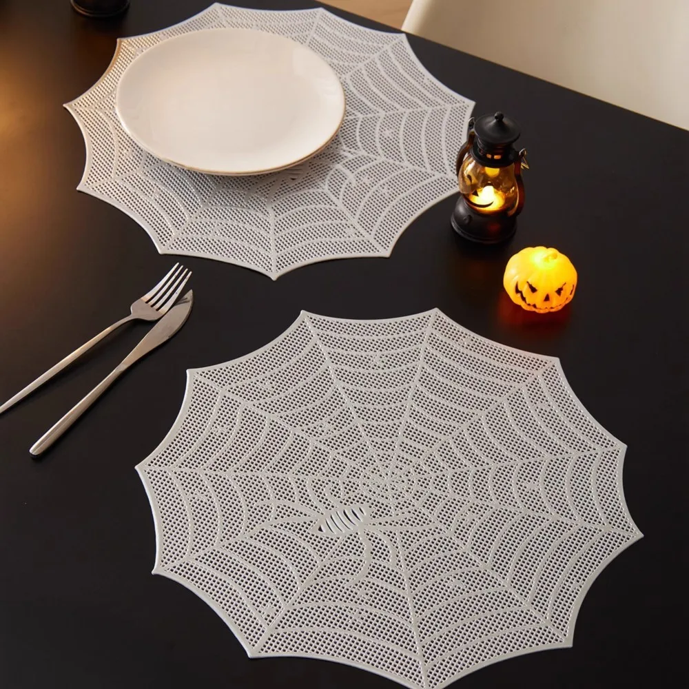 Napperon en PVC ajouré en toile d'araignée pour Halloween, 4 pièces, Anti-brûlure, antidérapant, facile à nettoyer, dessous de verre de Table, tapis de décoration résistant à la chaleur pour vacances