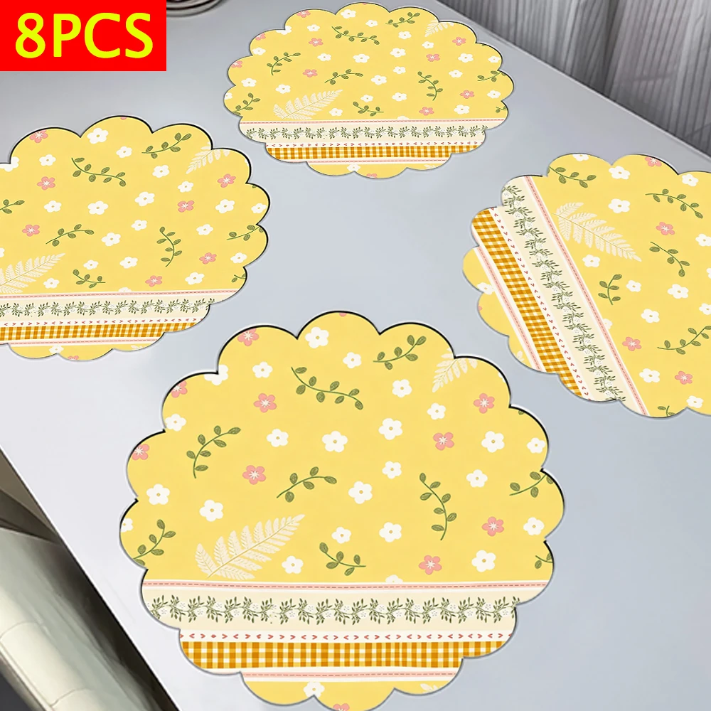 8 pièces napperons-jaune rose motif à carreaux floraux 38x38cm tapis de Table, tapis de plaque adaptés à la décoration de table de festival des familles