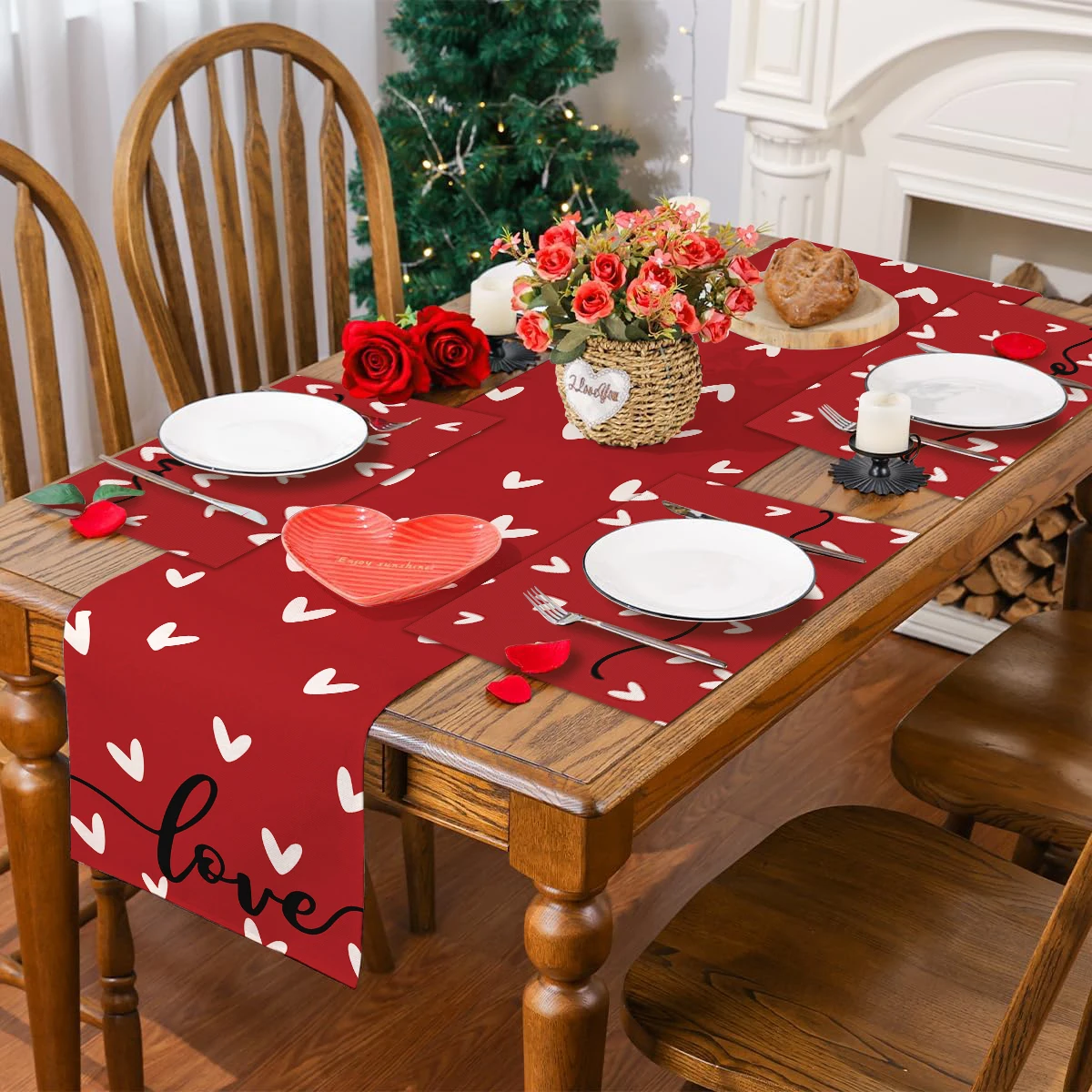 1/4/5/6/7 pièces napperons et drapeaux de table sur le thème de la Saint-Valentin, tapis de table antidérapants, durables et isolants thermiques, fête et date