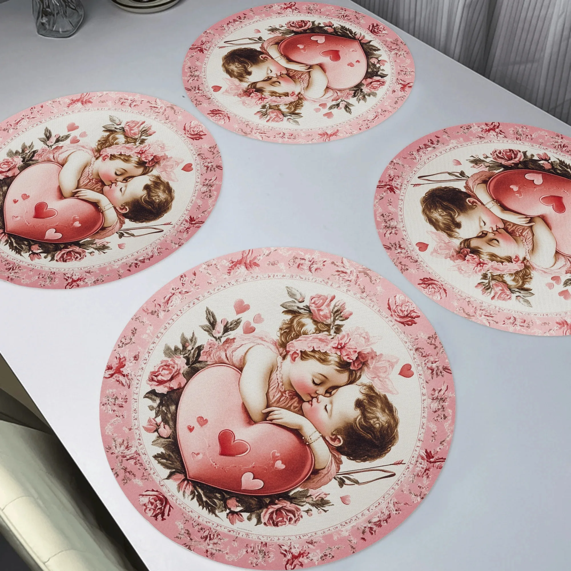 Lot de 4 sets de table ronds pour la Saint-Valentin, tapis de table tissés en polyester de 38 cm, lavables à la main, salle à manger décorative durable non toxique