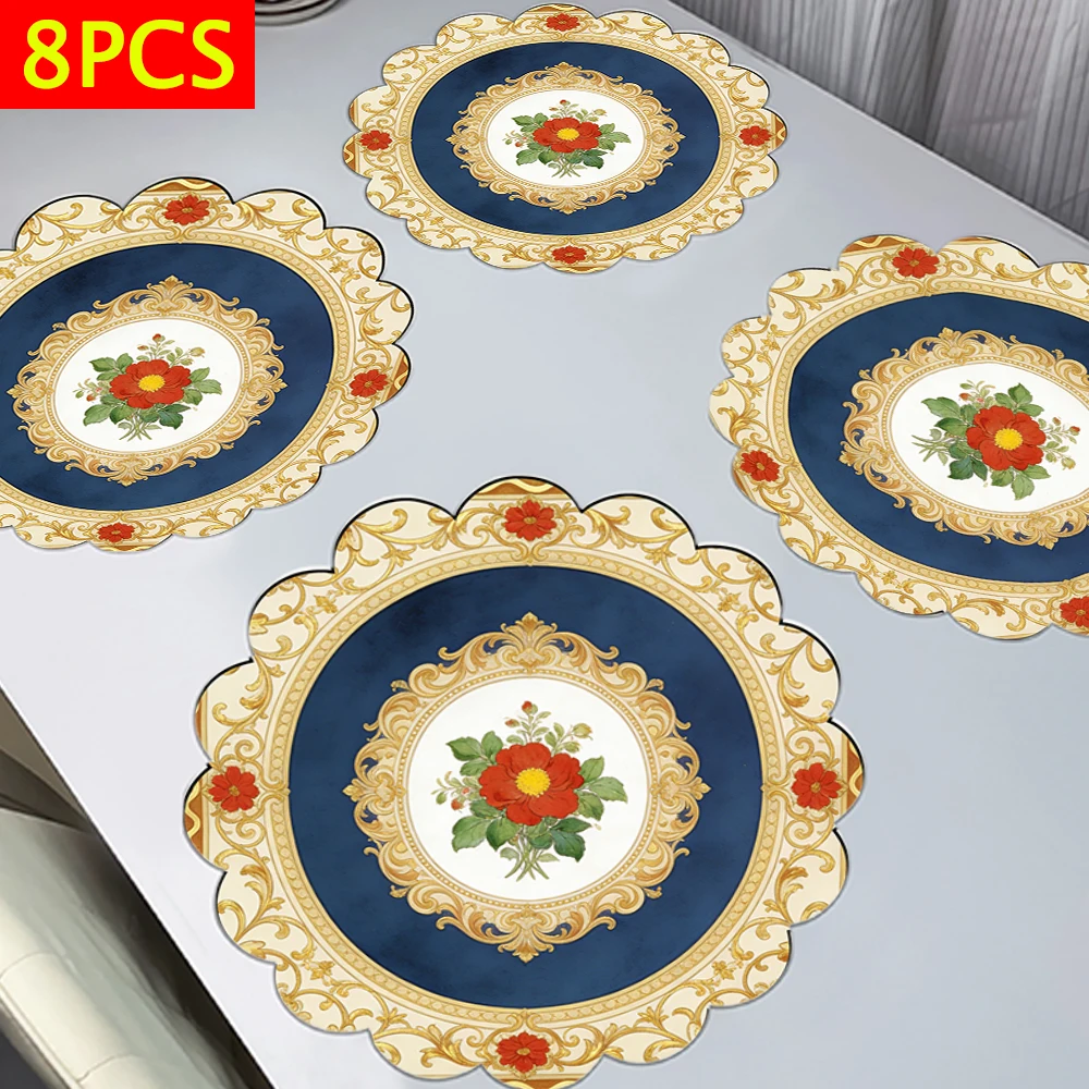 8 pièces napperons-design Floral couronne dorée bordeaux, tapis de Table 38x38cm, tapis d'assiettes, adapté à la décoration de table de festival des familles