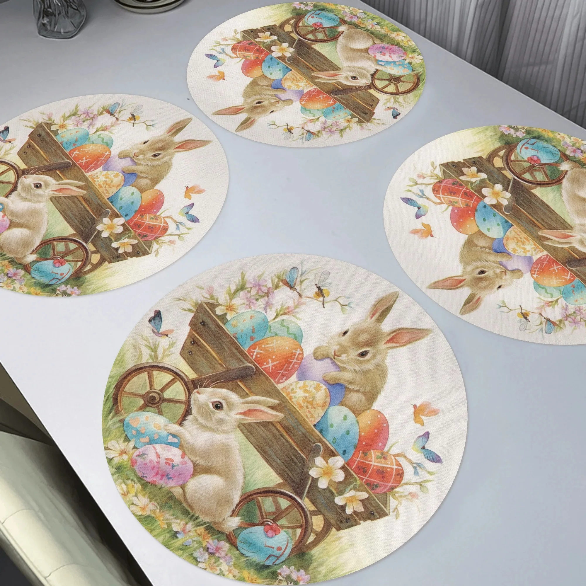 Lot de 4 sets de table en forme de lapin de Pâques, tapis de table ronds en polyester de 15 pouces, design mignon d'œuf et de lapin, antidérapant, lavable, lavage à la main uniquement
