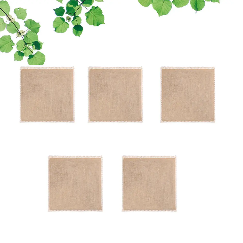 5 pièces de sets de table en toile de jute 10x10, naturel, en jute, avec bordure en dentelle, imperméable, pour la décoration de la maison, mariage, sous-verre