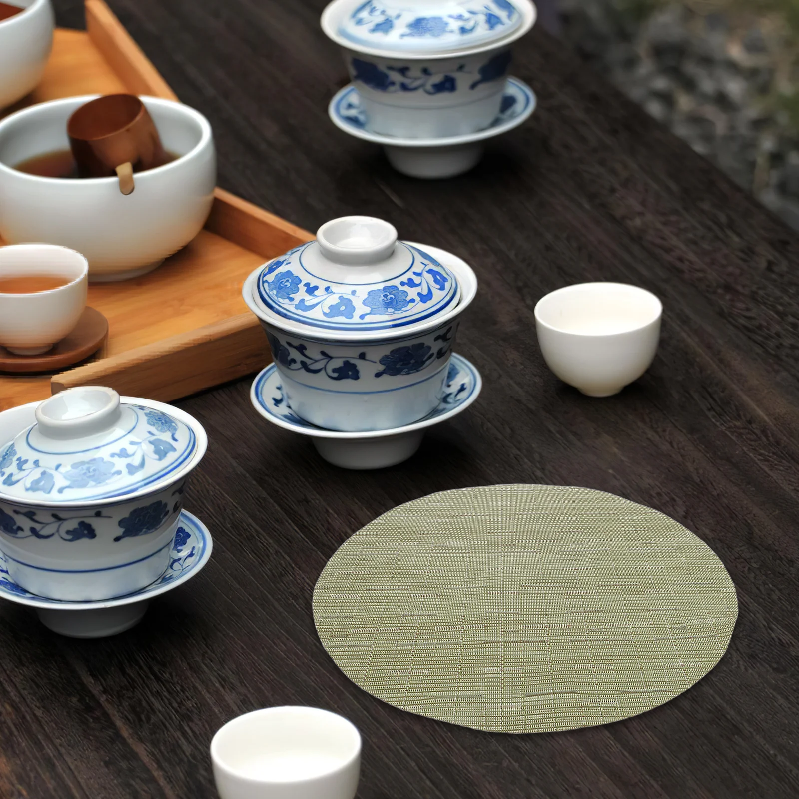 8 pièces de sets de table ronds en PVC avec motif bambou, protection de table à manger, tapis antidérapants pour la maison, le bureau, les fêtes, les vacances