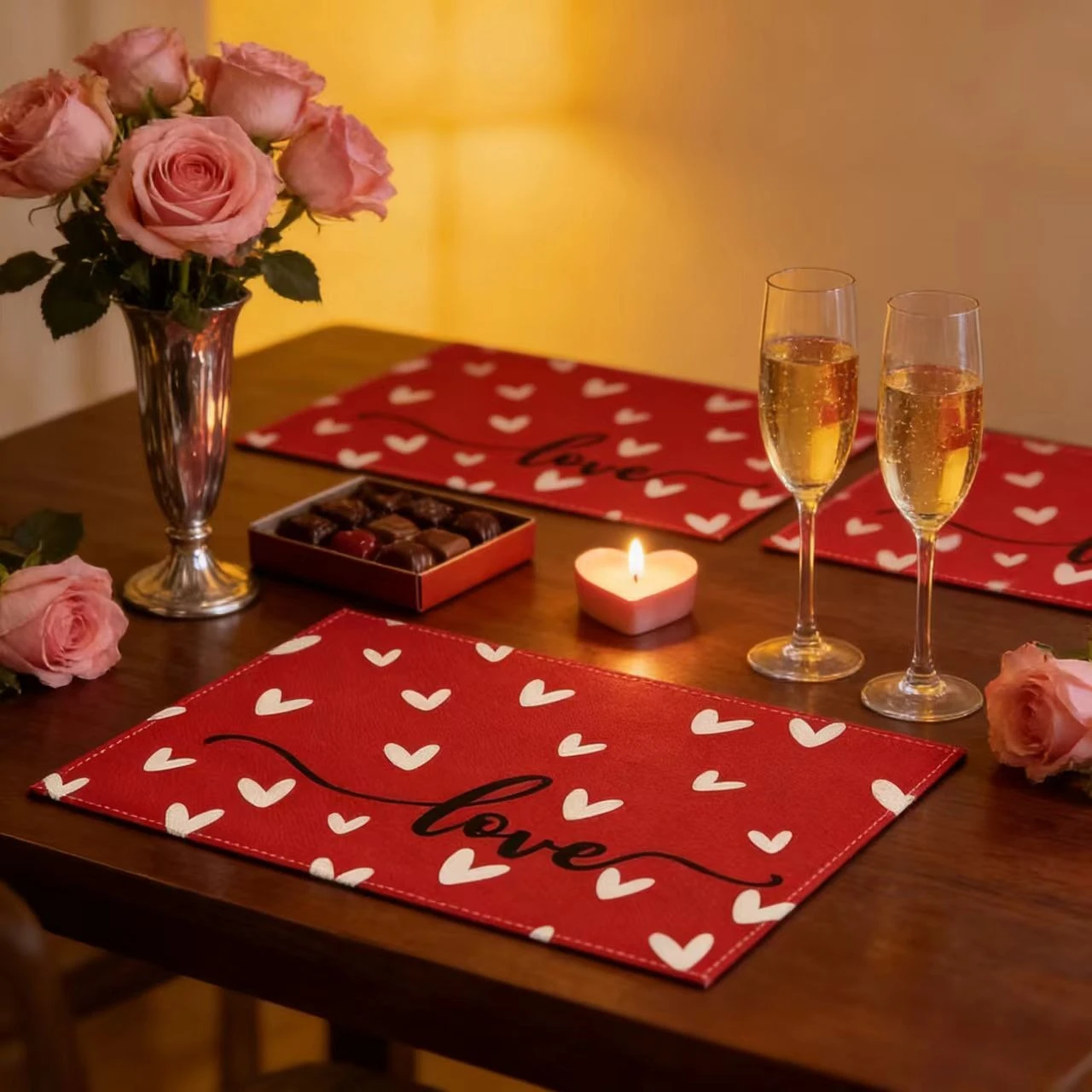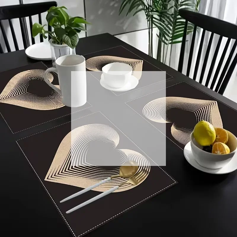 1/2/4 PCS Sets de table simples noirs 12x18 pouces en lin rectangulaires avec motif en forme de cœur Décoration d'intérieur