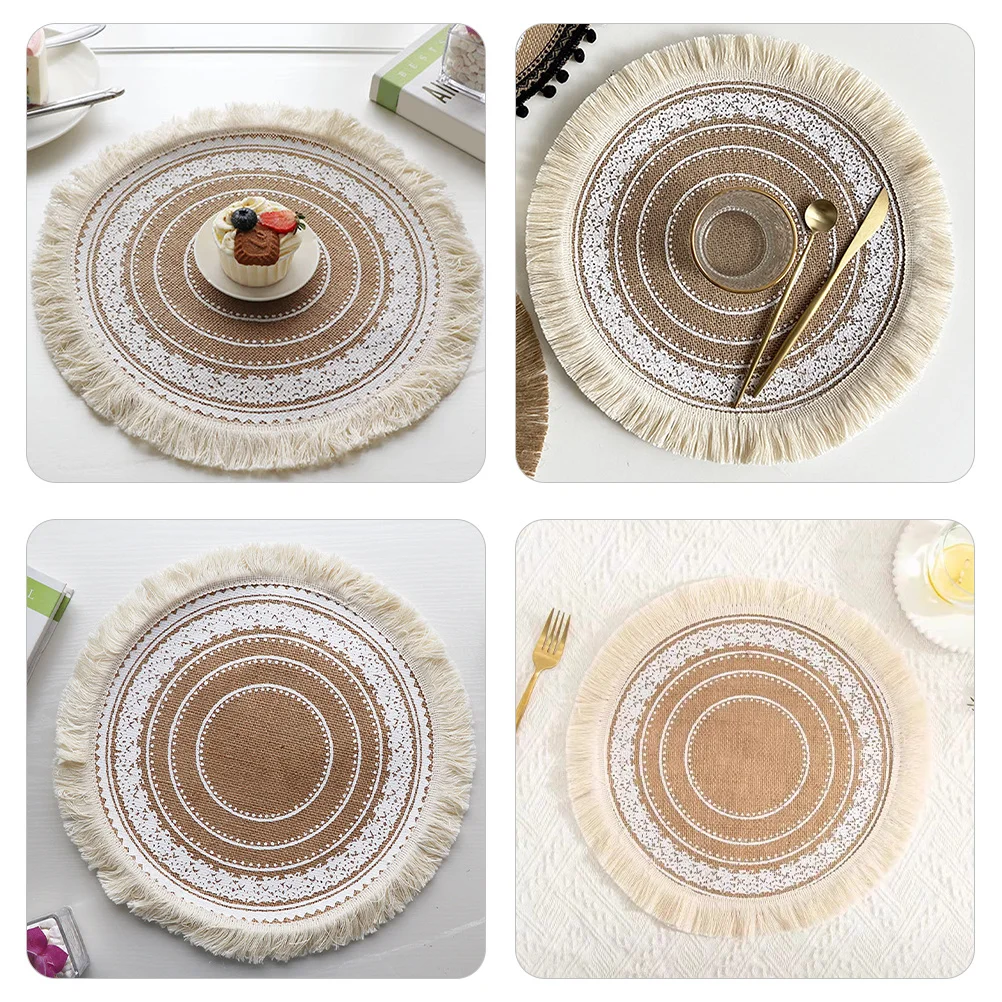 Set de table rond tissé, isolation thermique, style campagnard, sous-plat de table décoratif avec pompon
