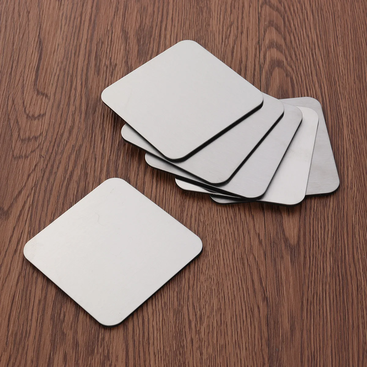 Ensemble de 6 sous-verres en acier inoxydable, carrés, résistants à la chaleur, antidérapants, dessous de verre, dessous de plat, support pour tasses, mugs, théières