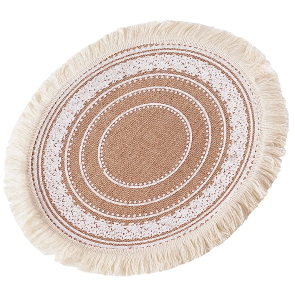 Set de table rond tissé, design rustique, résistant à la chaleur, avec bordure à pompons, style campagnard, sous-plat décoratif