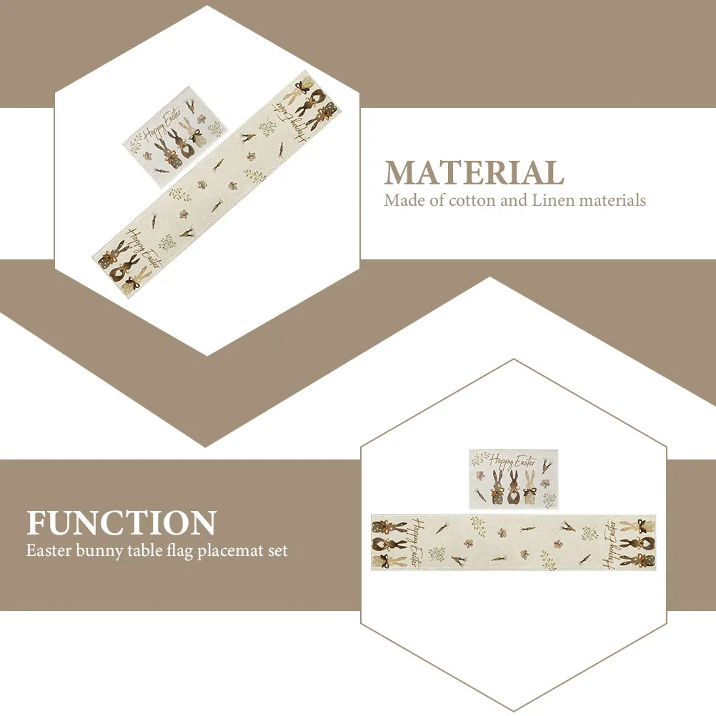 1 ensemble de chemin de table et de sets de table de Pâques, motif lapin, résistant à la chaleur, décoratif, pour la décoration de table de fête