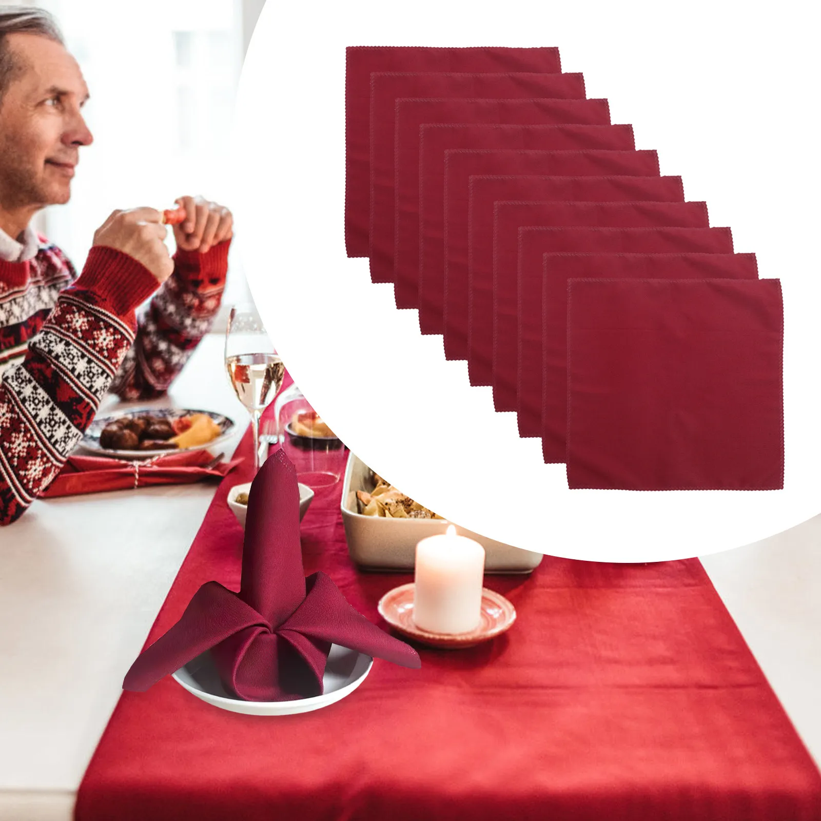 Lot de 10 serviettes en tissu de couleur unie, rouge foncé, carrées, pour restaurant, bar, hôtel, décoration de table à domicile, cadeau