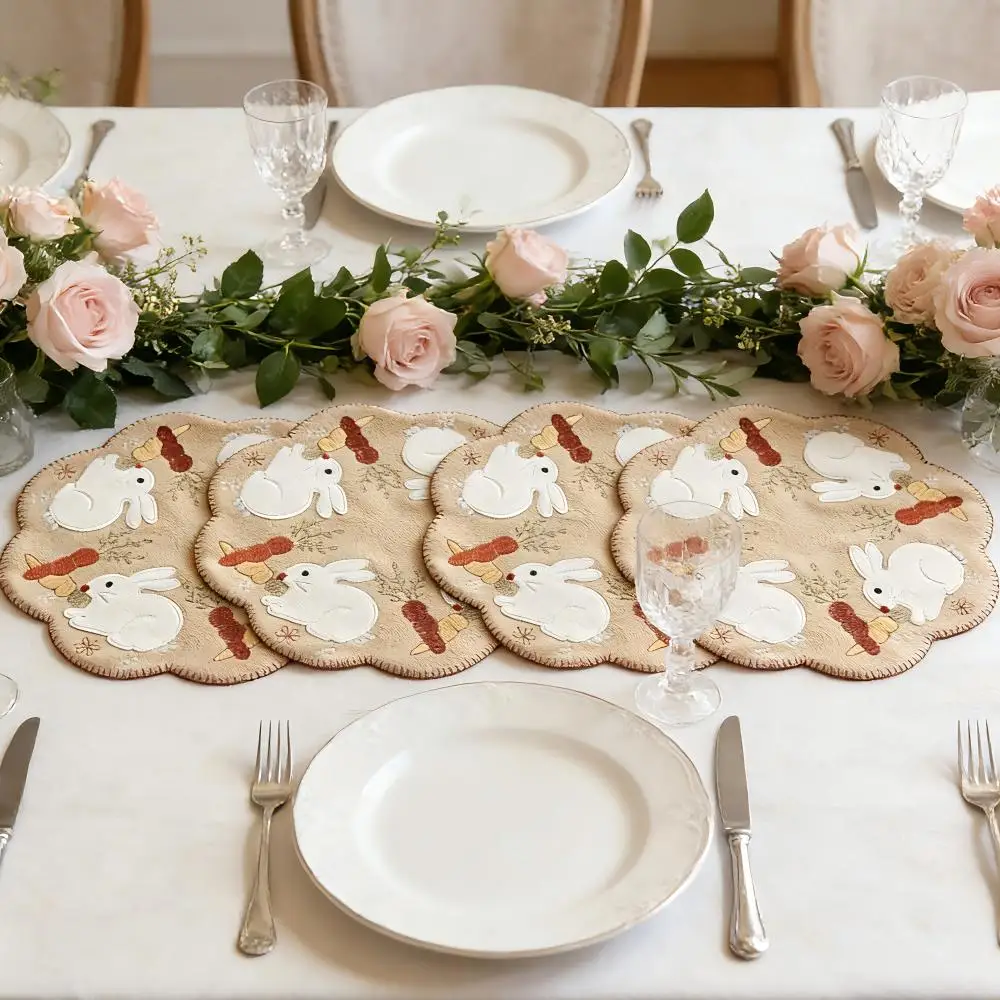 4/6 pièces napperons de pâques lapin Applique et carotte brodée bord ondulé napperons individuels napperons de Table élégants