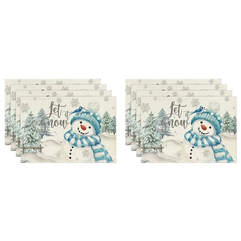 【ALLOWANCE】 8 sets de napperons de Noël rose neige, thème sapin de Noël, pour décoration de table de cuisine et salle à manger, C