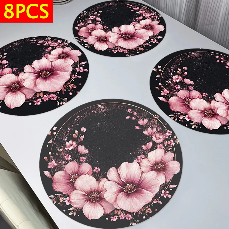 Napperons 8 pièces-conception de motif de cercle floral, tapis de table 38x38cm, tapis d'assiettes, adaptés à la décoration de table de festival des familles