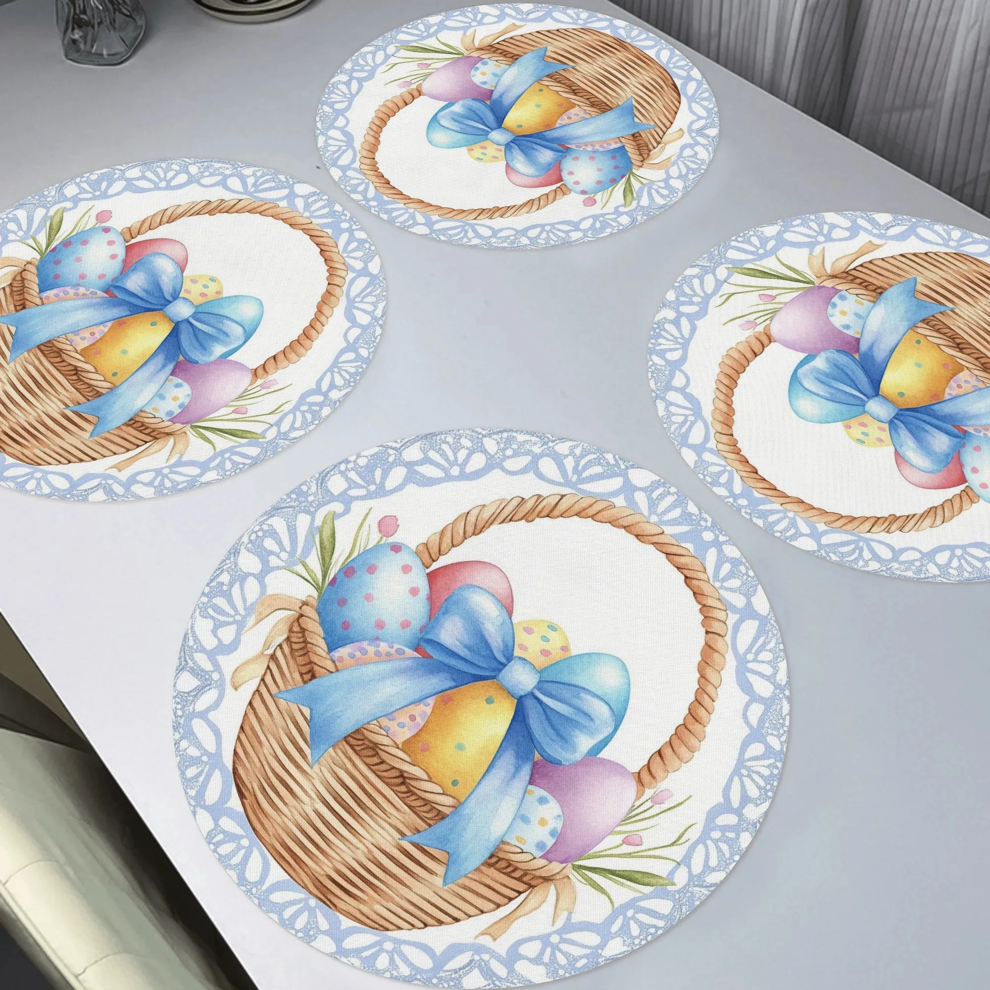 Napperons en forme d'œuf de pâques, 4 pièces, tapis de Table ronds à nœud bleu pour la décoration de la maison, tapis de Place lavables et antidérapants pour la cuisine quotidienne des vacances