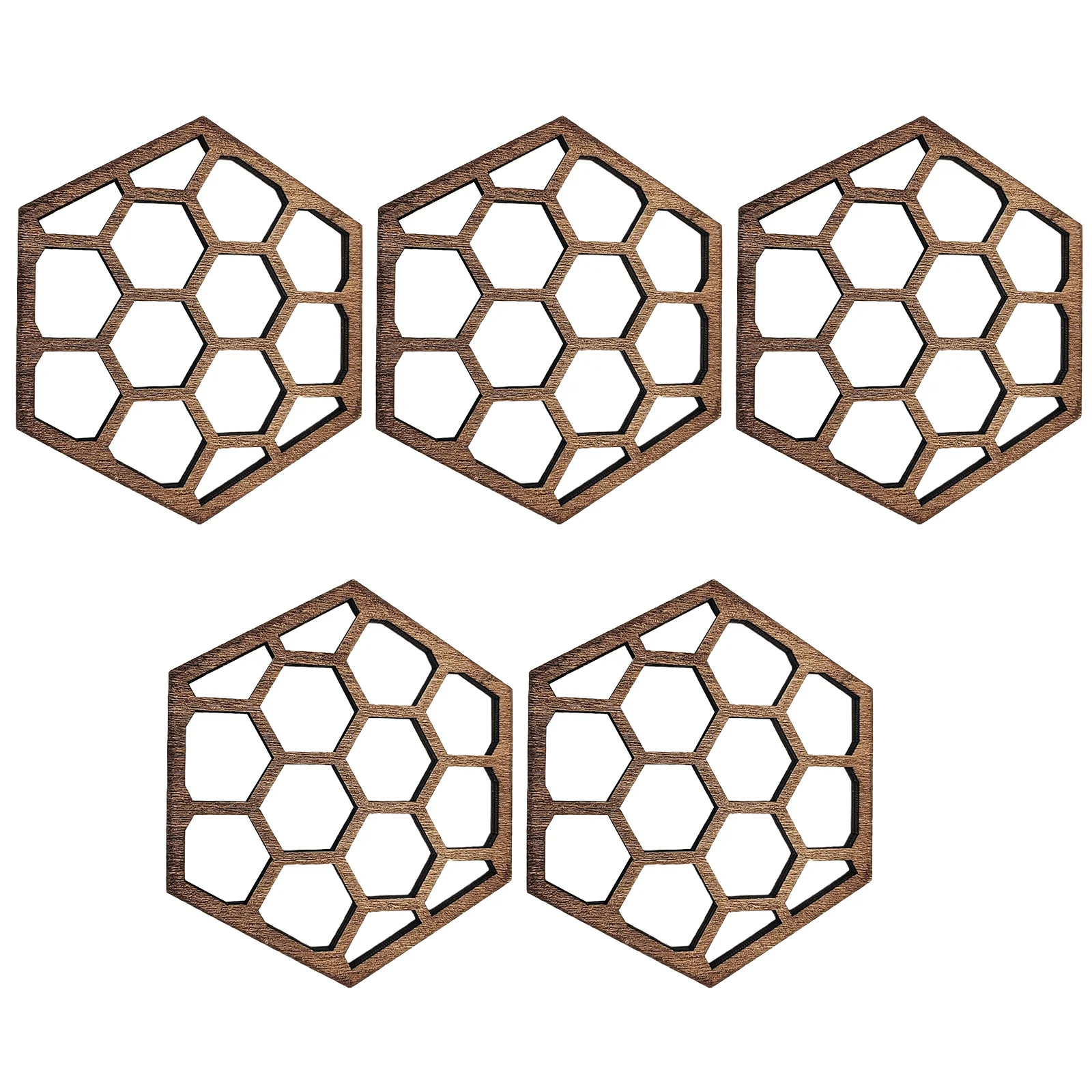 Sous-verres en bois 5 pièces, coussin pour tasse, pour la cuisine, la maison, sous-verres en bois en nid d'abeille, sous-verres pour boissons, accessoire de décoration