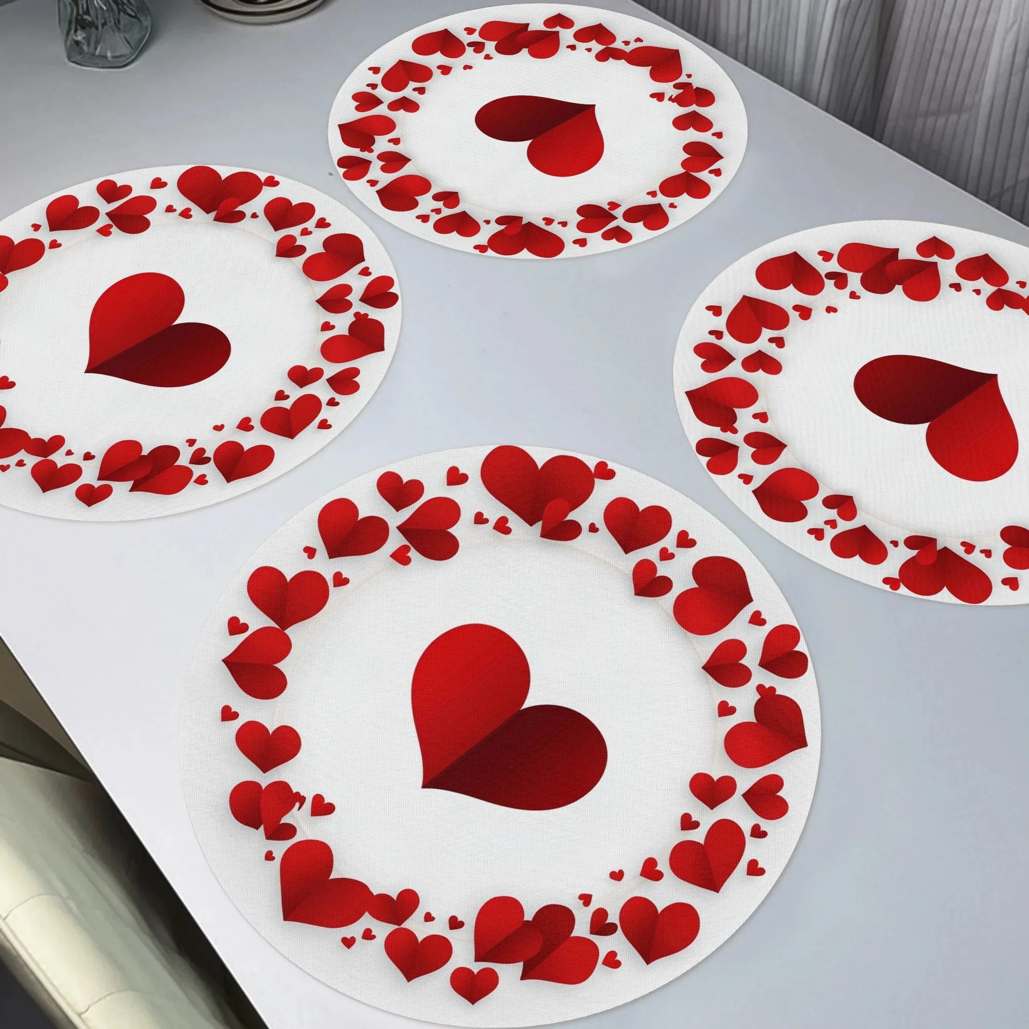 VIKAMA 4/6/8/10 pièces tapis de repas thème saint valentin coréen rond amour cuisine Restaurant tapis de Table décoration de vacances
