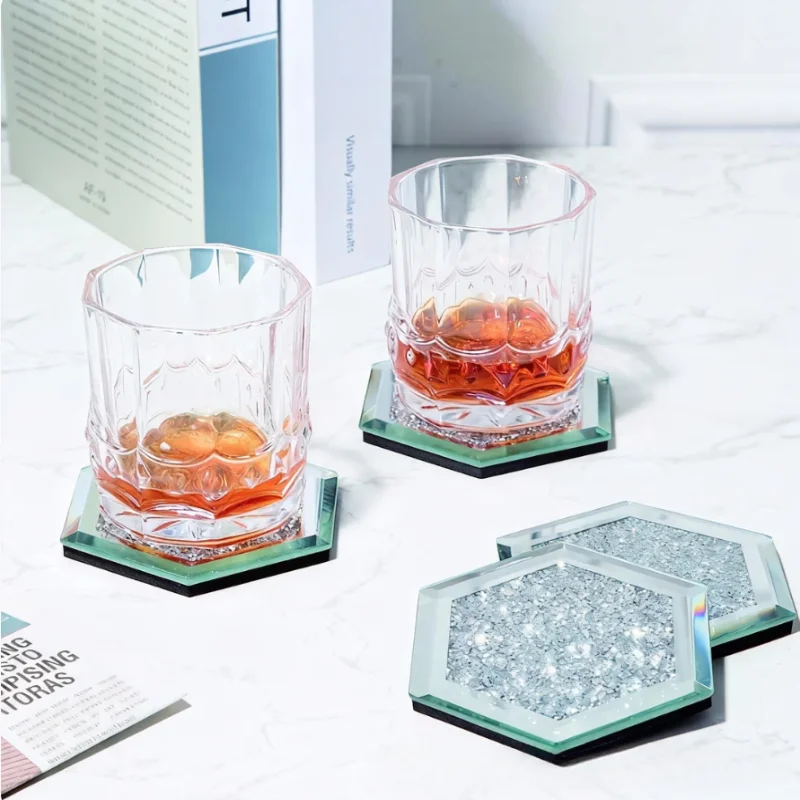 Dessous de verre en verre en forme de cœur, cristal résistant à la chaleur, tapis de Table Hexagonal Transparent, accessoire décoratif pour Table à manger