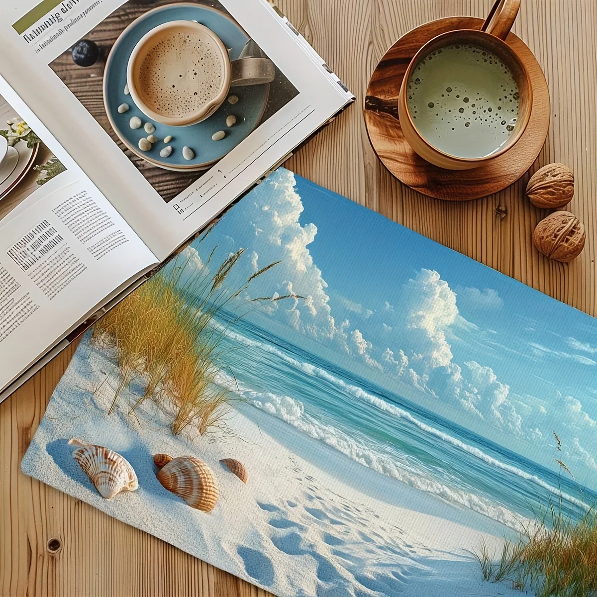 VIKAMA Nappe imprimée côte bleue tropicale, pour fête rétro, rendez-vous, salle à manger, décoration de table extérieure, antidérapante et réutilisable