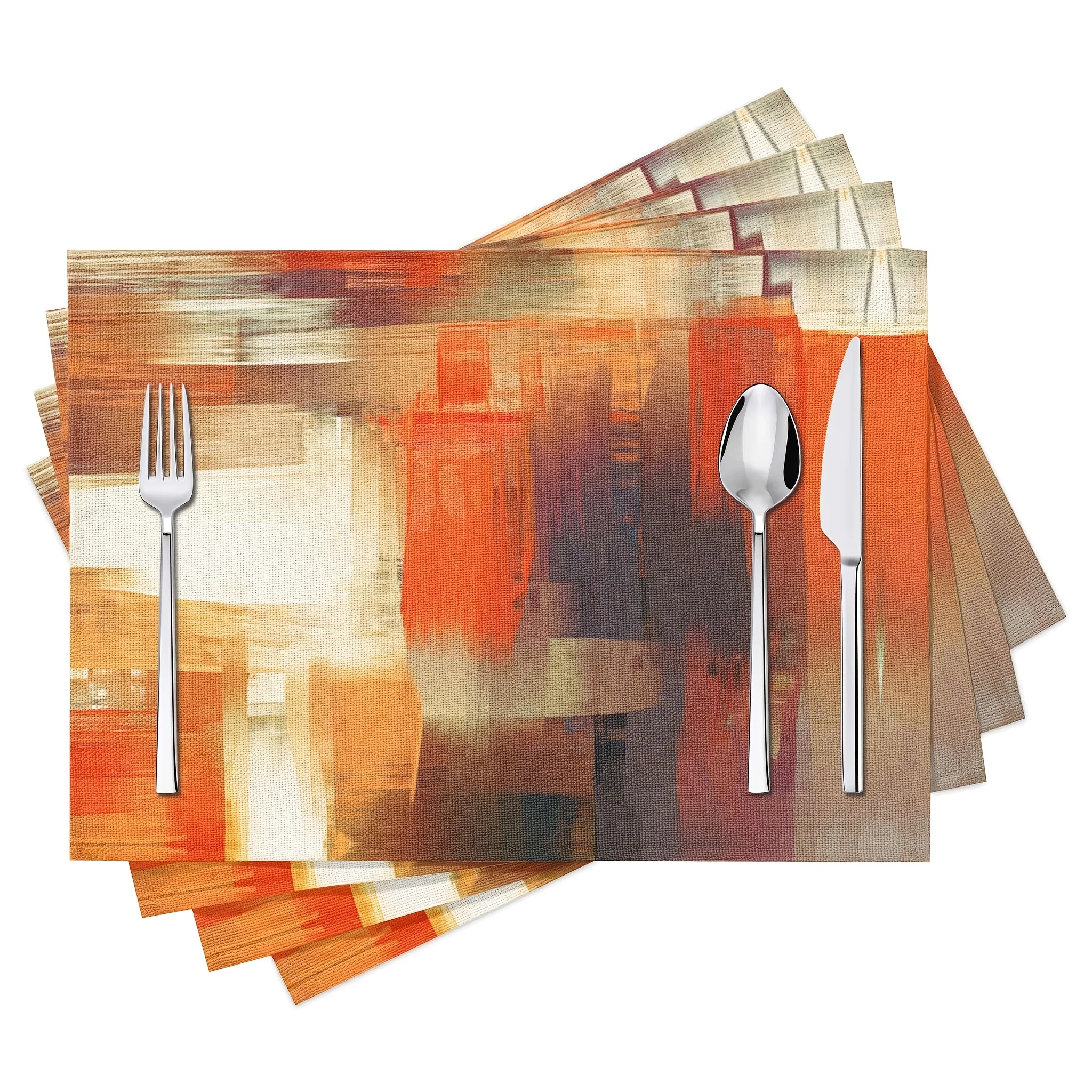 VIKAMA 4PC Art abstrait napperon chaud Orange marron Beige abstrait Table à manger Restaurant Art espace décoration