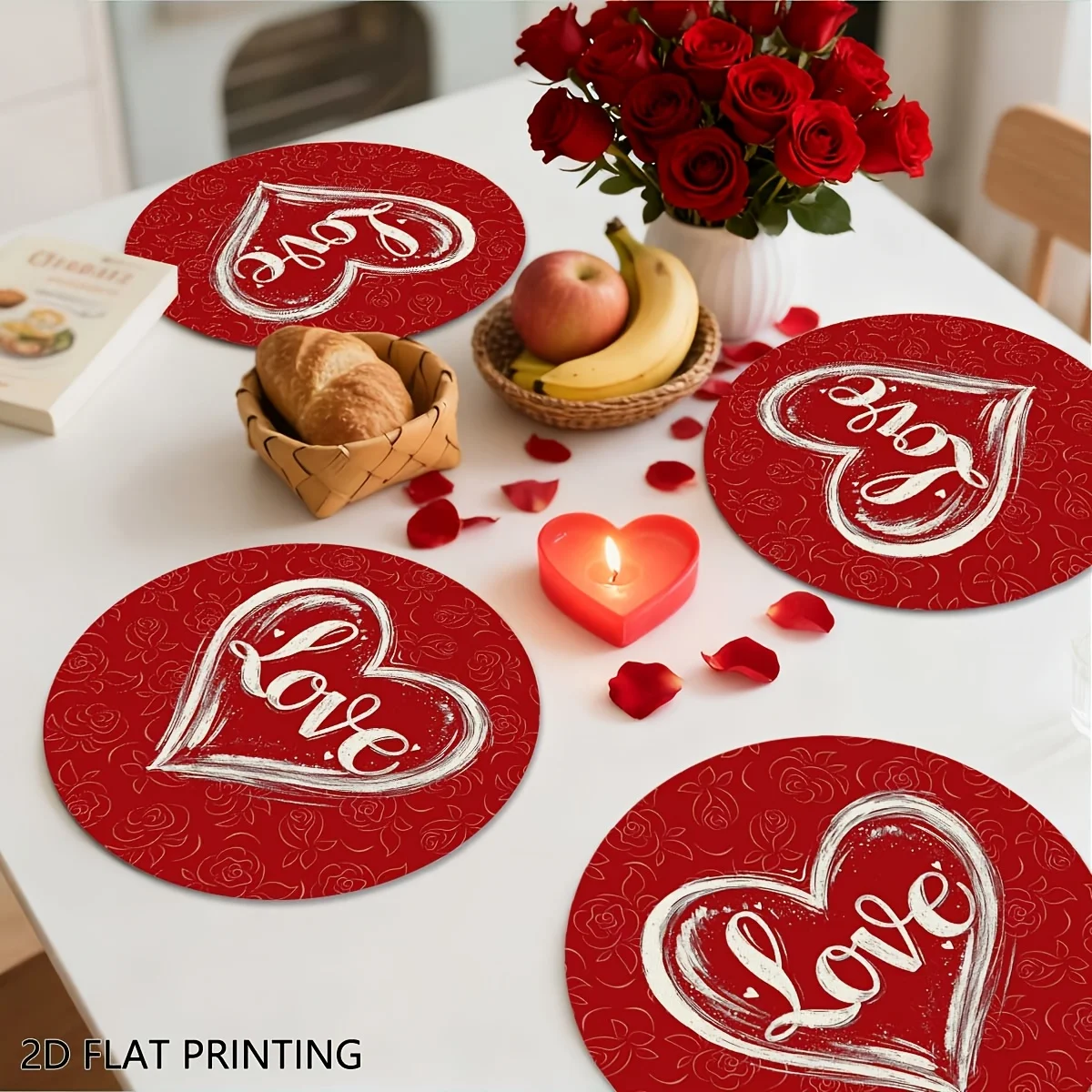 4 pièces, tapis de Table ronds pour la saint-valentin, napperons pour Table ronde, napperons en forme de cœur Rose pour la saint-valentin pour Table ronde