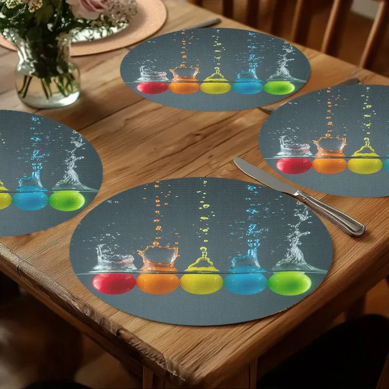Napperons vibrants contre les éclaboussures d'eau, ronds de 15 pouces, antidérapants, résistants à la chaleur, lavables en Machine, en Polyester, idéal pour la salle à manger, 4 pièces