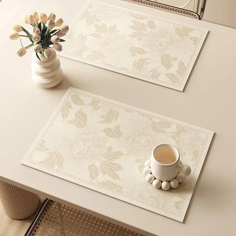 Tapis de table occidental haut de gamme, style luxe léger français, imperméable, anti-taches d'huile et anti-brûlure, en cuir, résistant à la saleté, pour usage domestique.