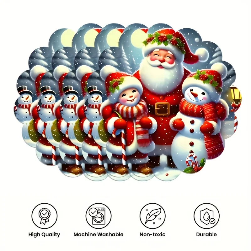 VIKAMA 4 pièces napperons père noël bonhomme de neige rouge et blanc tapis de Table rond à bord ondulé décorations de fête de vacances