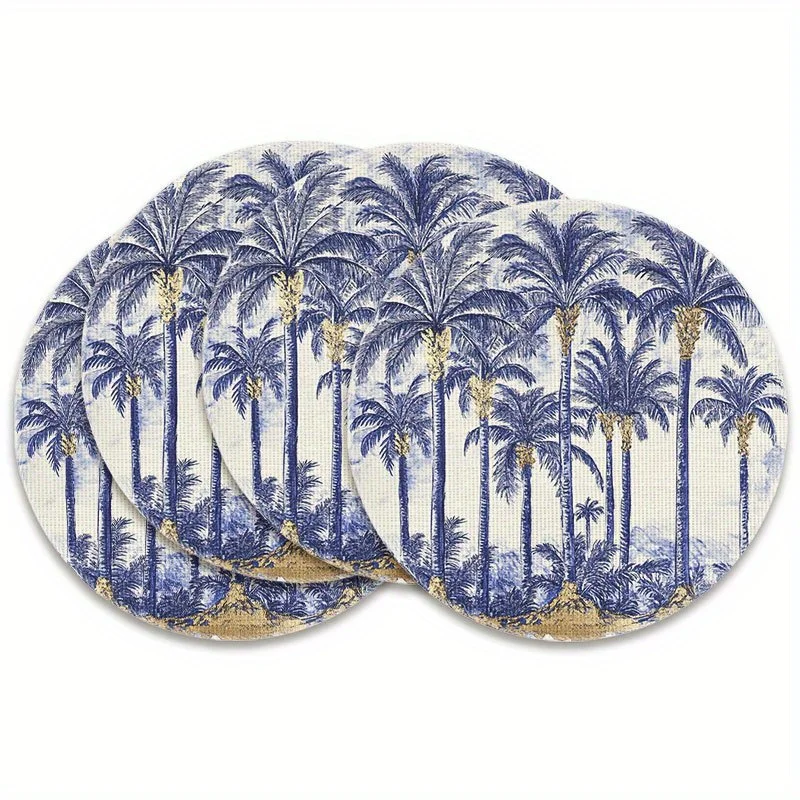 VIKAMA 4PC tapis de repas palmier Tropical couleur platine bleu palmier plage vague Table plage vacances Style décoration