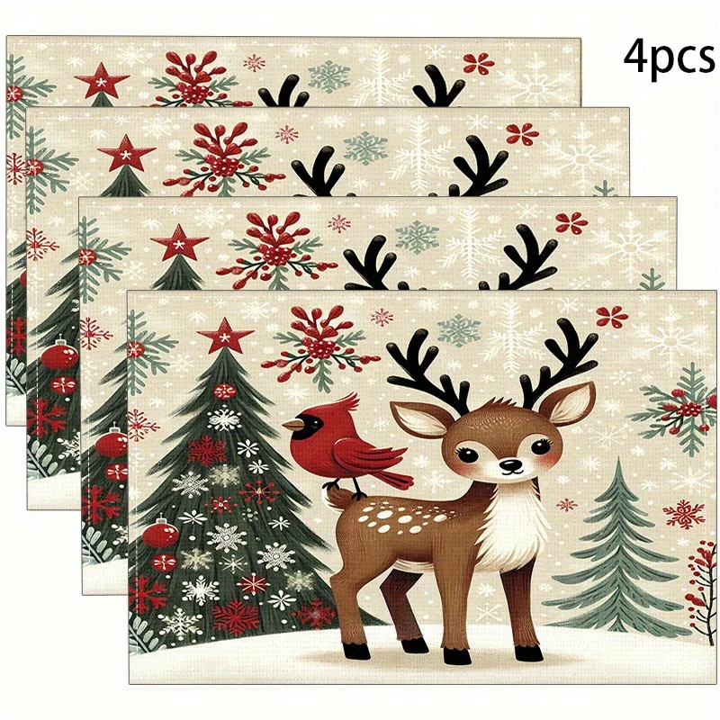 VIKAMA Ensemble de napperons de Noël en forme de renne, 4 pièces, pour réunions de famille, fêtes de Noël, décoration de table de vacances