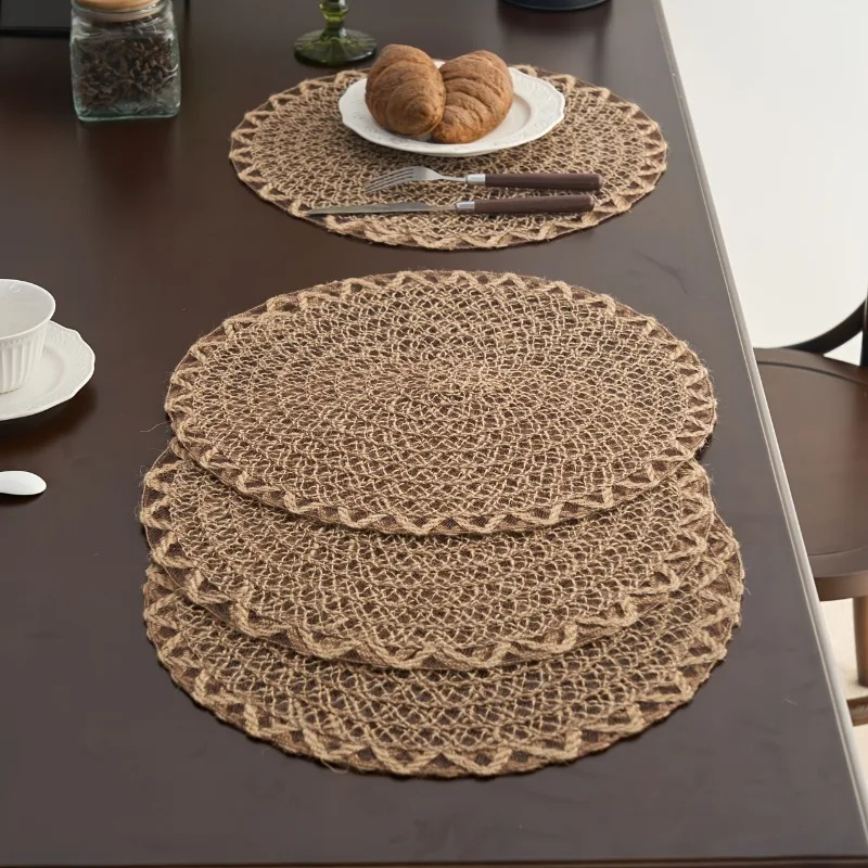 Napperons tissés ondulés avec anneau extérieur en Jute, tapis de Table décoratifs antidérapants Vintage de pays américain, 1/4/6/12 pièces