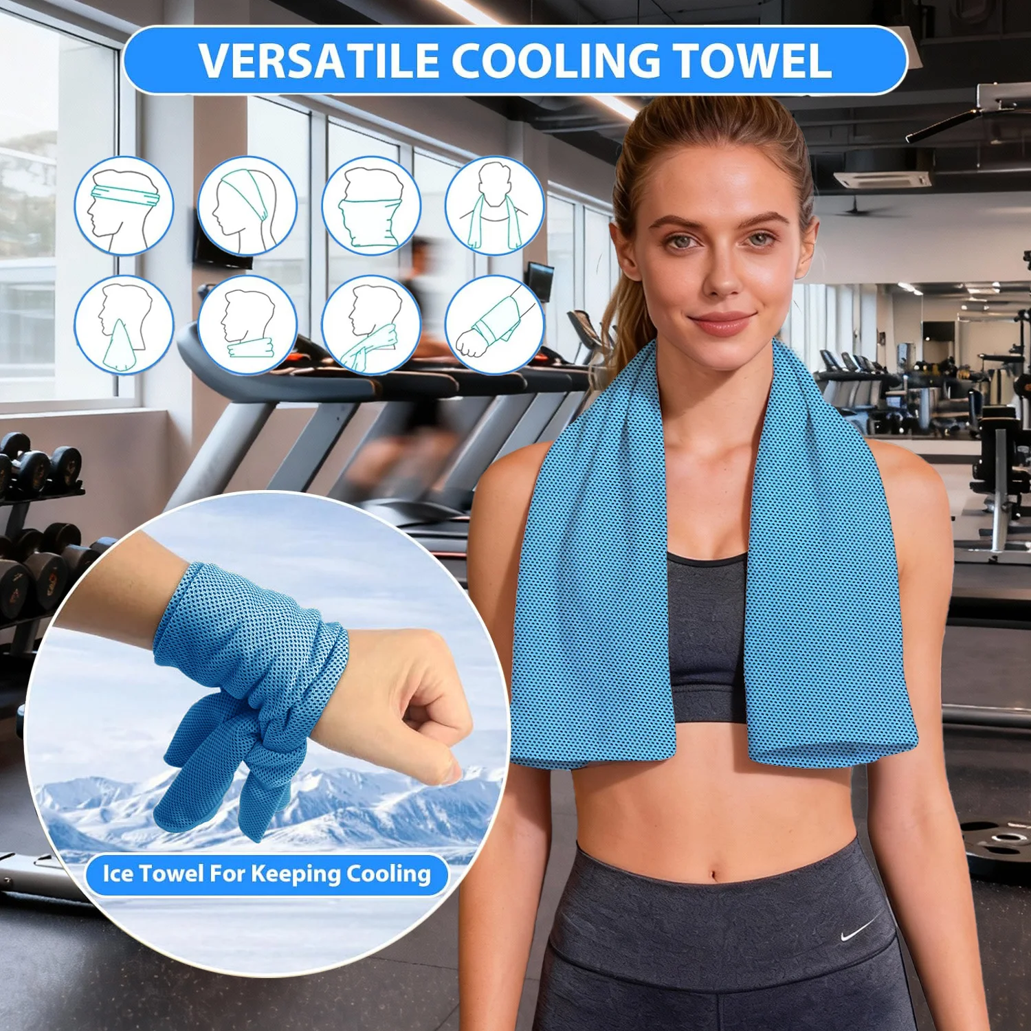 Serviettes Cool 4 pièces (35,4 x 11,8 pouces), serviettes de sport douces et respirantes, adaptées aux activités de plein air, à la salle de sport, au yoga et au sport
