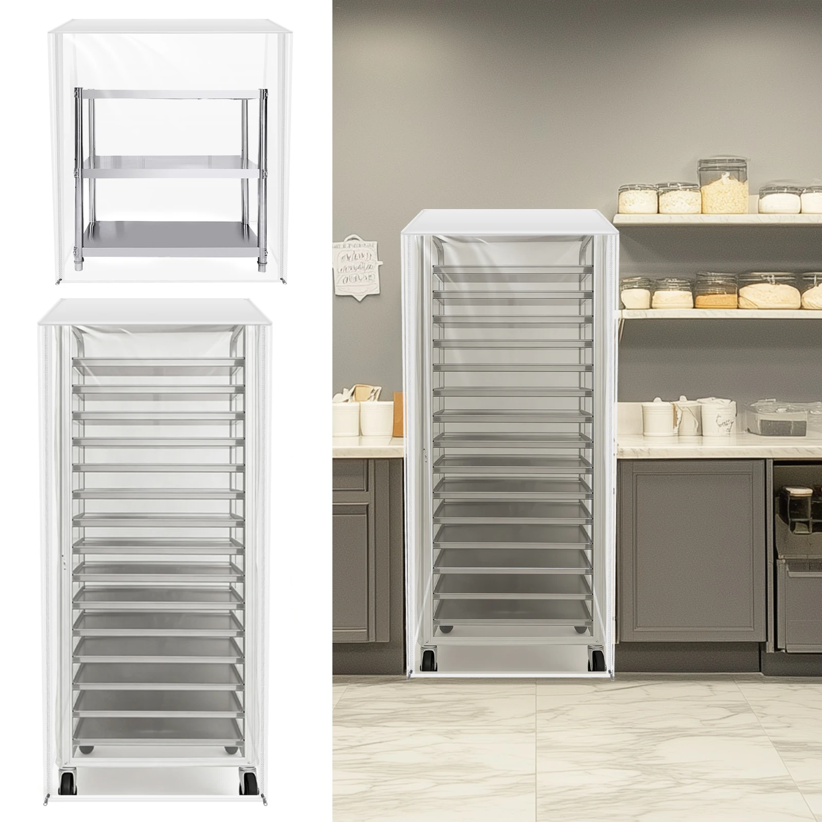 Couverture de crémaillère à pain avec fermeture éclair, support de casserole à 20 niveaux/couvercle de crémaillère pour petits pains, 23 "x 28" x 64 ", haute densité, étanche et anti-poussière