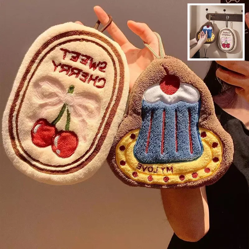 Serviette à main en velours corail brodé en forme de fleur, mouchoir absorbant pour enfants, chiffon de cuisine domestique