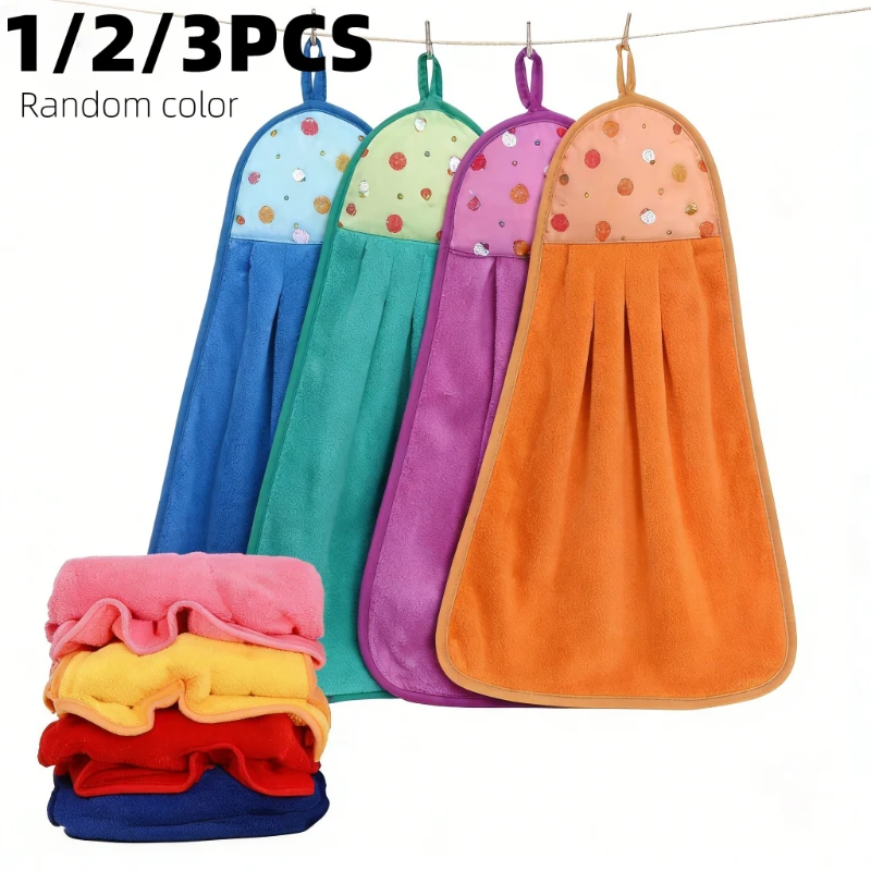 Serviettes suspendues en velours de corail coloré, 1/2/3 pièces, douces et absorbantes, essuyage des mains, vaisselle domestique, cuisine, salle de bains