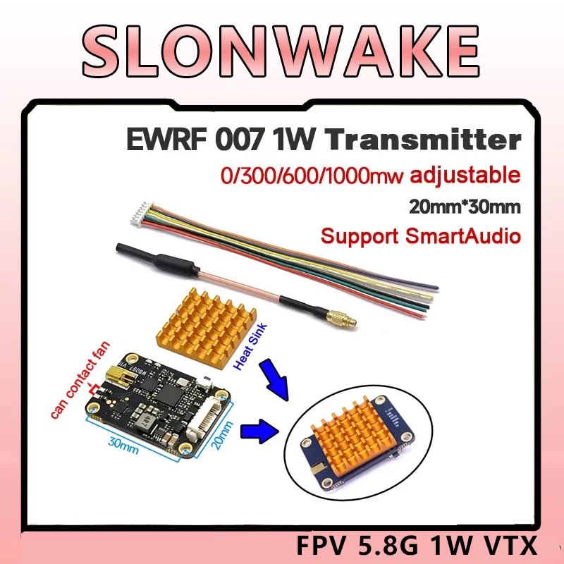 SLONWAKE 5.8GHz 48CH 2000mW haute puissance 20Km + transmetteur VTX longue portée ventilateur de refroidissement intégré pour Drones à voilure fixe RC FPV
